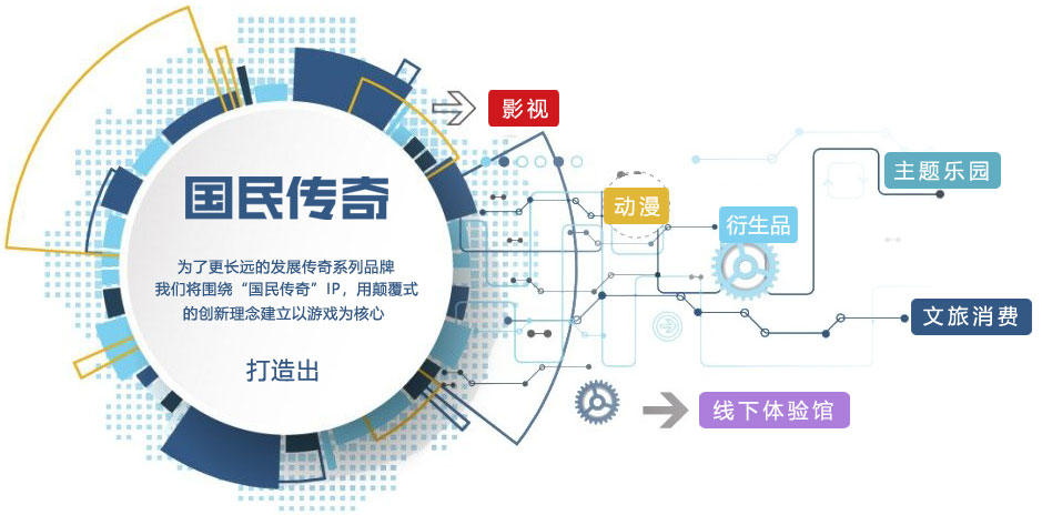 产业园完善后,同时启动依托传奇类游戏发展影视、动漫、体验馆、消费和文旅类衍生品、房地产、旅游产业的孵化,终极目标是打造线上、线下互动、相互促进的全生态立体产业生态圈。